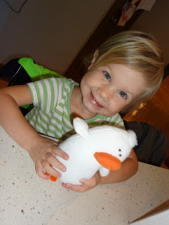 Don't forget to mention that Lumpy makes a great zombie duck! Scarlett was chasing me around the driveway earlier and Lumpy was yelling braaaaains in a little tiny zombie duck voice. -Jess