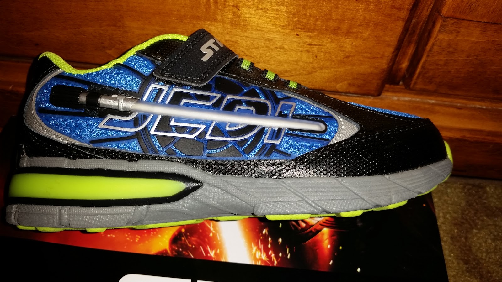 Now, B tends to like the Dark Side a bit, but when it comes to Star Wars and lightsabers, I know these will be winners in his eyes! What kid doesn't want lightsaber shoes that light up when they walk around?