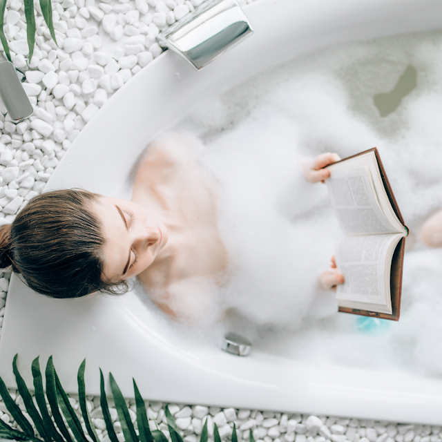 You could also have a relaxing bubble bath if you're feeling like treating yourself (or need some extra chill time). If bubbles are your thing, then go ahead and add lavender essential oil into the mix: It’s soothing without being overpowering.