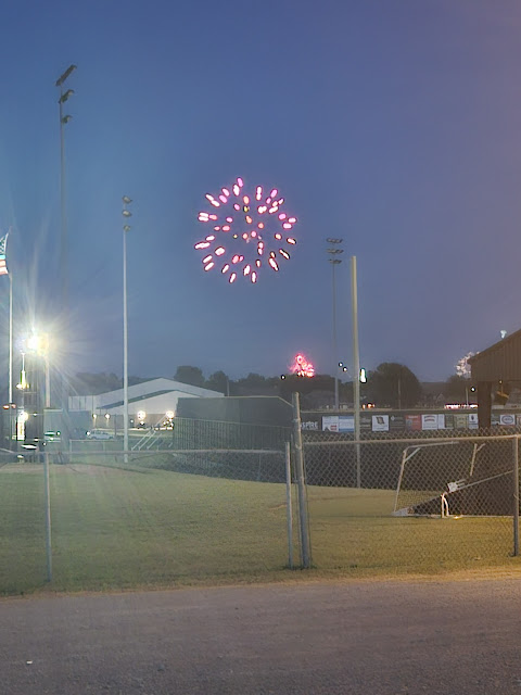 Besides the Gathering Place, we had so much fun eating all the food and having multiple pool days! But my favorite thing about that week was, Fireworks! Something that I really love about my house, is we are directly behind the ball fields of the local high school. And this is no small high school, this school is pretty large, with well-maintained sports fields. I can literally walk through my back gate, down a short path, and be on the school's track. My neighbor had mentioned that on the 4th of July if we headed out to the track bleachers, we'd be able to see the firework show put on by the golf course across the street. So as soon as it turned dark, with kiddos in tow, and phones charged up, we walked to the bleachers and watched one of the best fireworks shows I've ever seen.